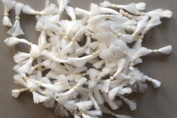 ? ? 改性纖維球生產(chǎn)工藝:改性纖維球是由改性纖維絲結(jié)扎而成的。是由含量在35%~85%之間的二和三單體的共聚物紡絲制得的改性纖維絲束經(jīng)過預(yù)熱 → 蒸汽牽伸 → 水洗 → 烘干 → 熱定形 → 卷曲 → 分絲 → 扎結(jié)→剪斷→包裝等工藝加工而成。 改性纖維絲的性能似羊毛,彈性較好,伸長20%時回彈率仍可保持65%,蓬松卷曲而柔軟,有合成羊毛之稱。強度 22.1~48.5cN/dtex,比羊毛高1~2.5倍。